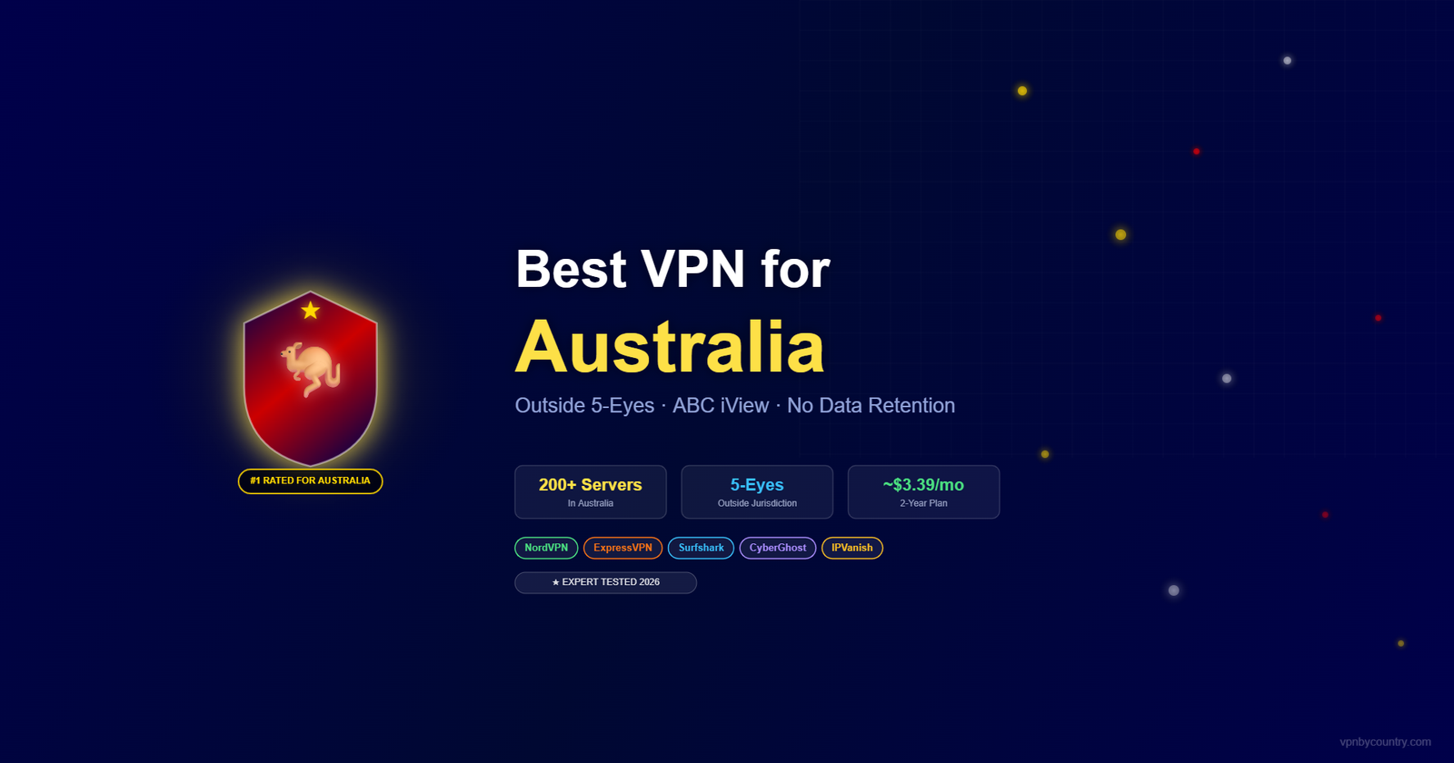 The best VPNs for Australia in 2026, tested against the Mandatory Data Retention scheme and for ABC iView streaming. NordVPN leads with 200+ Australian servers outside Five Eyes.