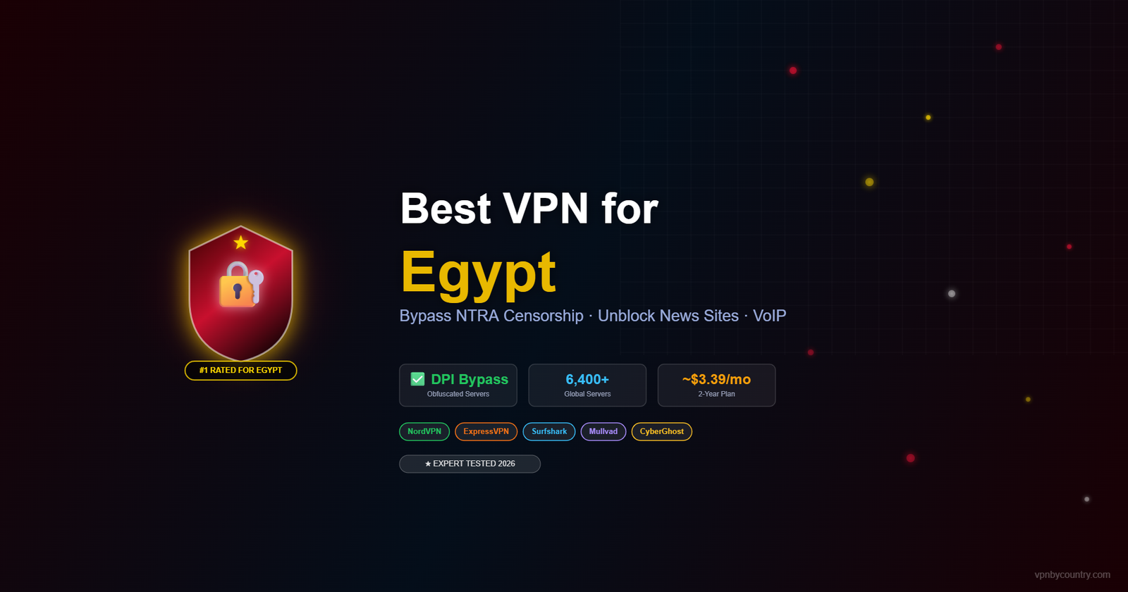 The best VPNs for Egypt in 2026, tested for bypassing NTRA censorship, unblocking news sites and VoIP. NordVPN with obfuscated servers is the top pick.