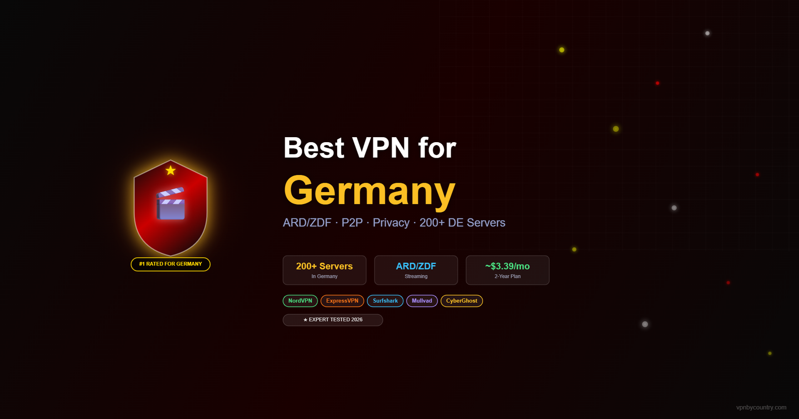 The best VPNs for Germany in 2026, tested for ARD/ZDF streaming, P2P, and privacy under German data laws. NordVPN leads with 200+ German servers.