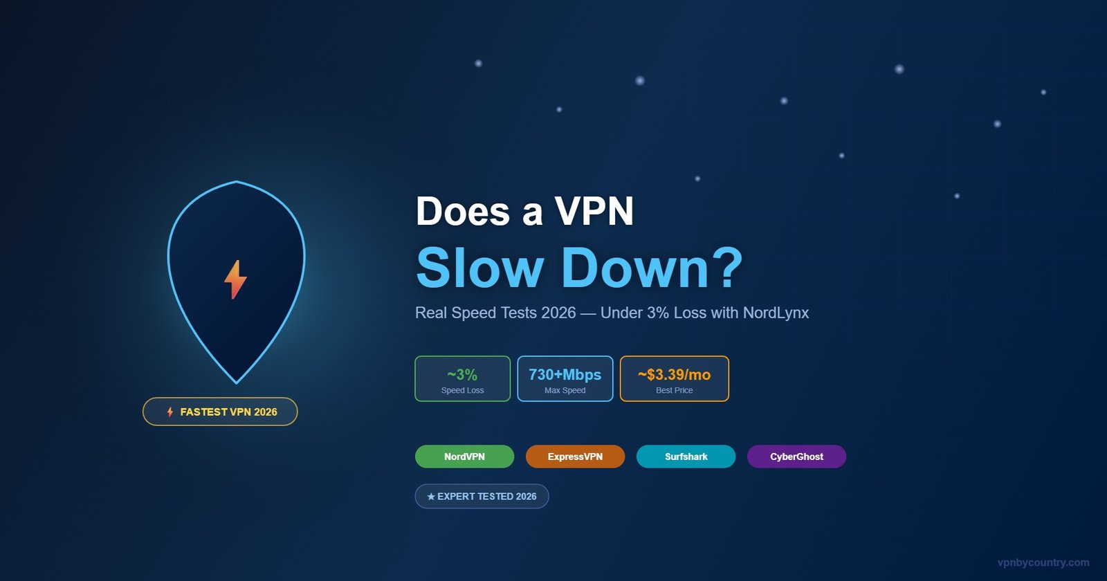 Does a VPN slow down internet? We tested 5 VPNs in 2026. NordVPN loses only 3% speed. Here are the real numbers plus 7 tips to maximize VPN speed.