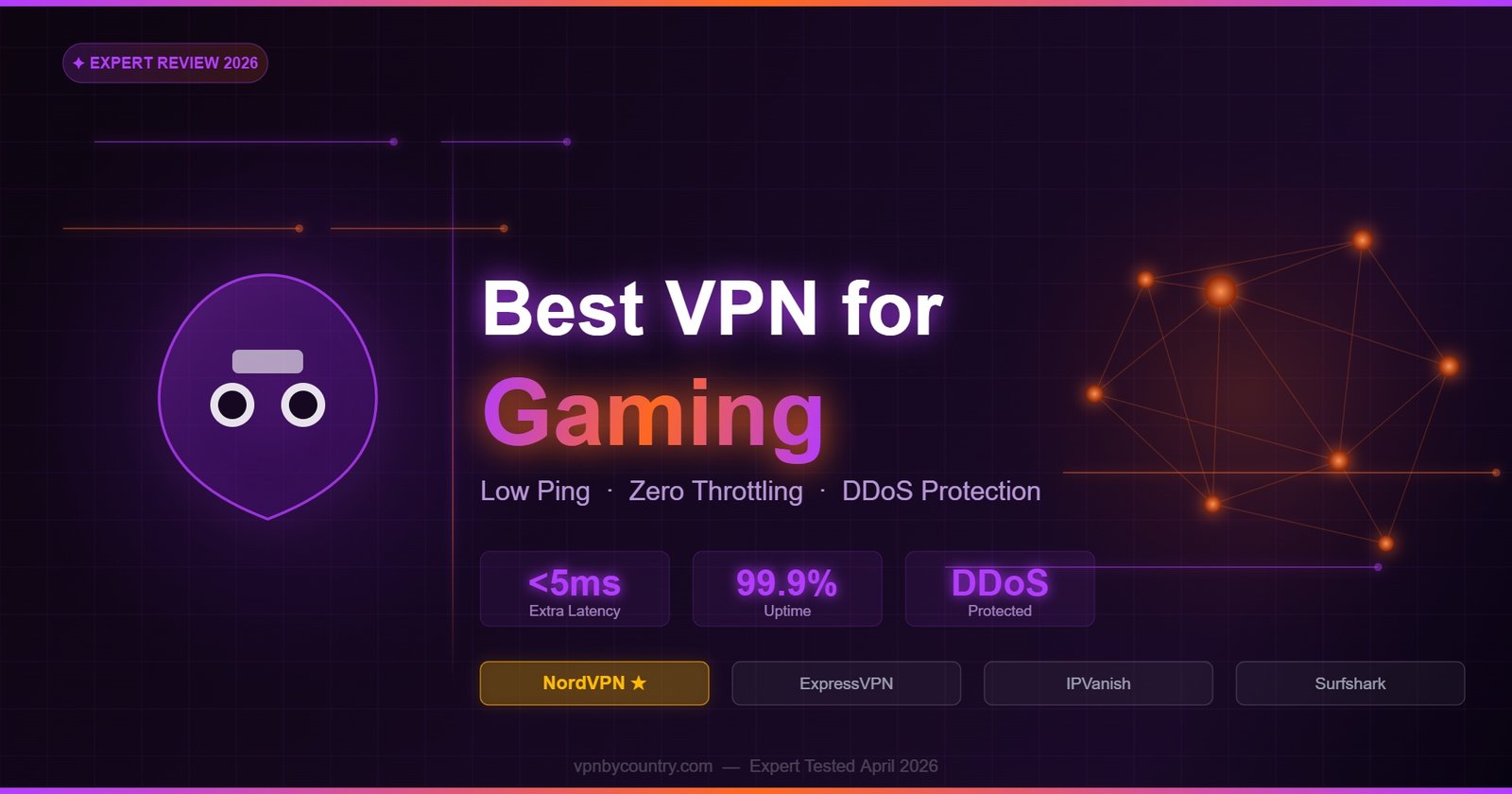 Best VPN for gaming in 2026 — lowest ping tested, DDoS protection, unblock geo-restricted servers. Works on PC, PS5, Xbox, and mobile. Real benchmarks included.