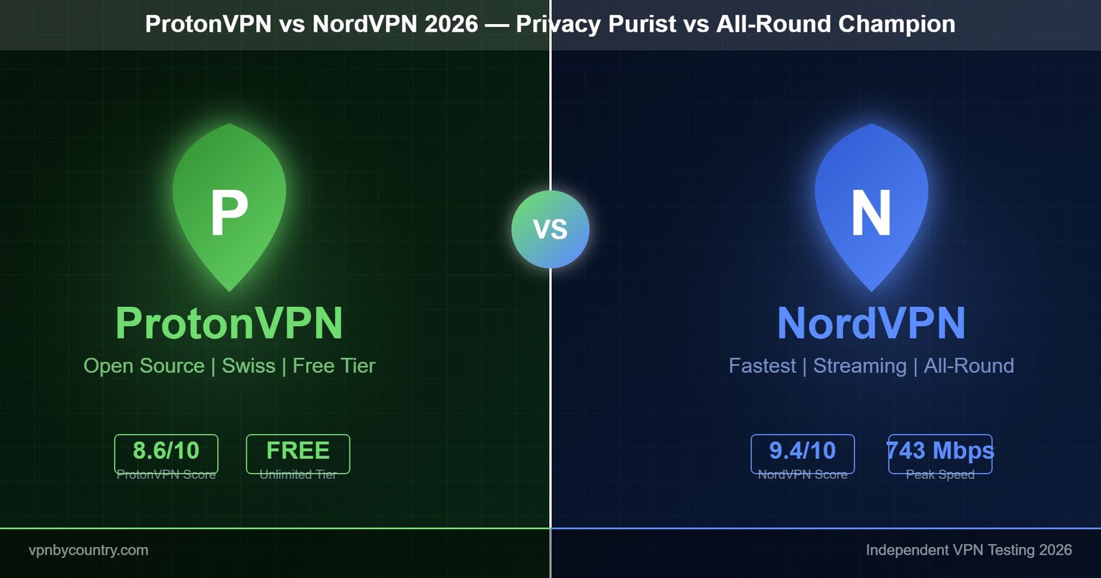 ProtonVPN is the choice of journalists, activists, and privacy purists — open-source, Swiss-based, and free to start. NordVPN is the fastest, most feature-complete VPN available. This comparison settles which is better for everyday users and which is better for serious privacy needs.